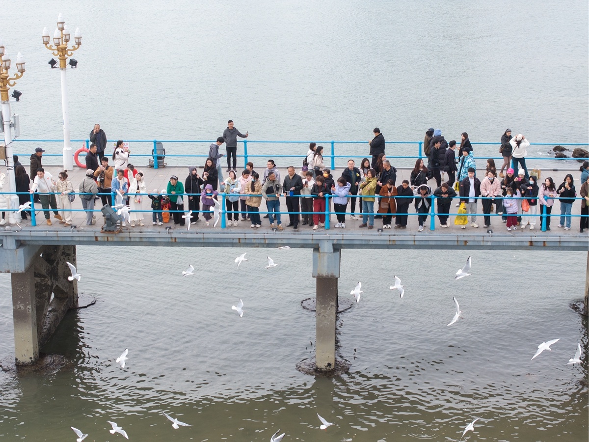 喂海鸥成了游客的“打卡”项目