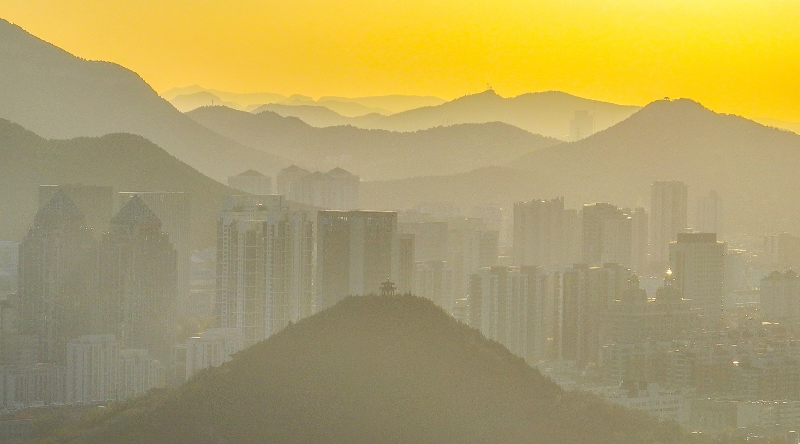 暖阳下,眺望泉城,光影斑驳间层峦叠嶂,交织成一幅动人心魄的画卷。