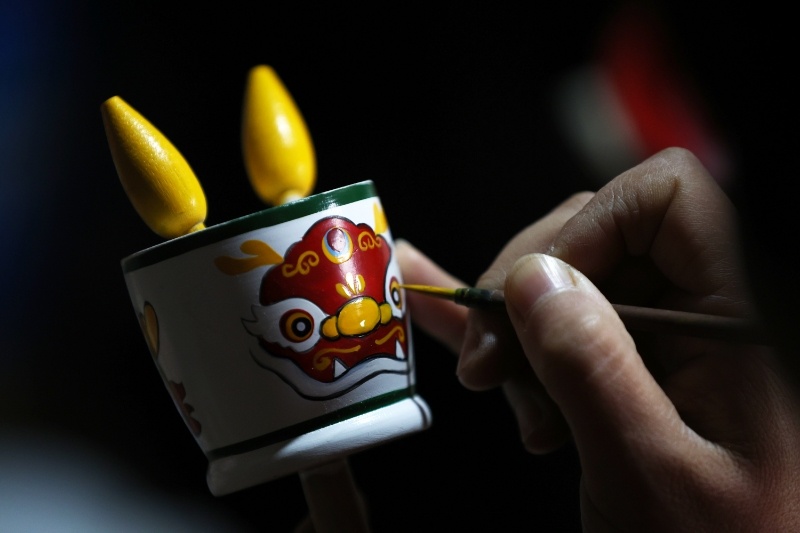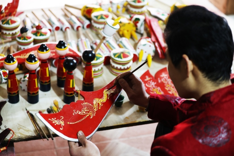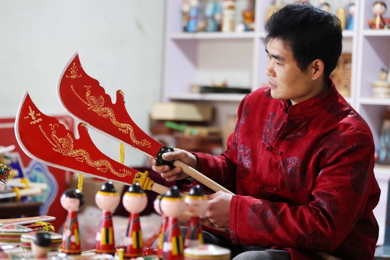 春节临近,年味渐浓。临沂市郯城县的民间艺人制作“金龙刀”等带有“龙元素”的木旋玩具,俏销各地年集市场。