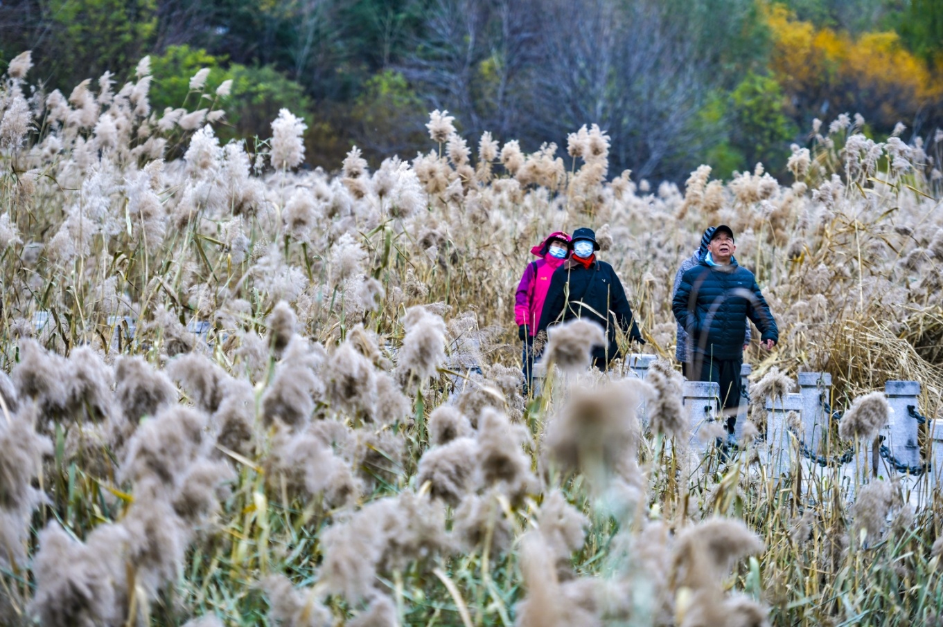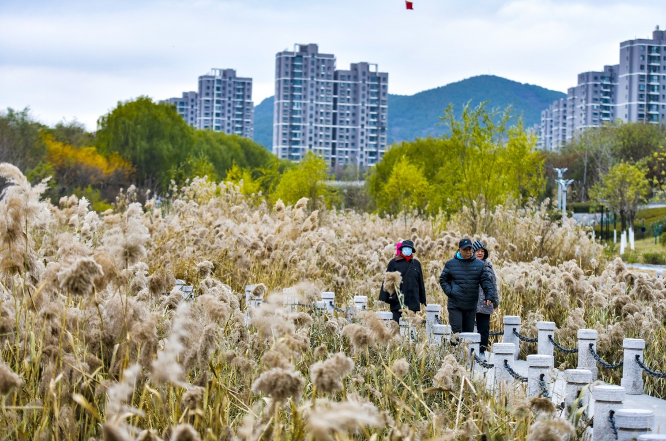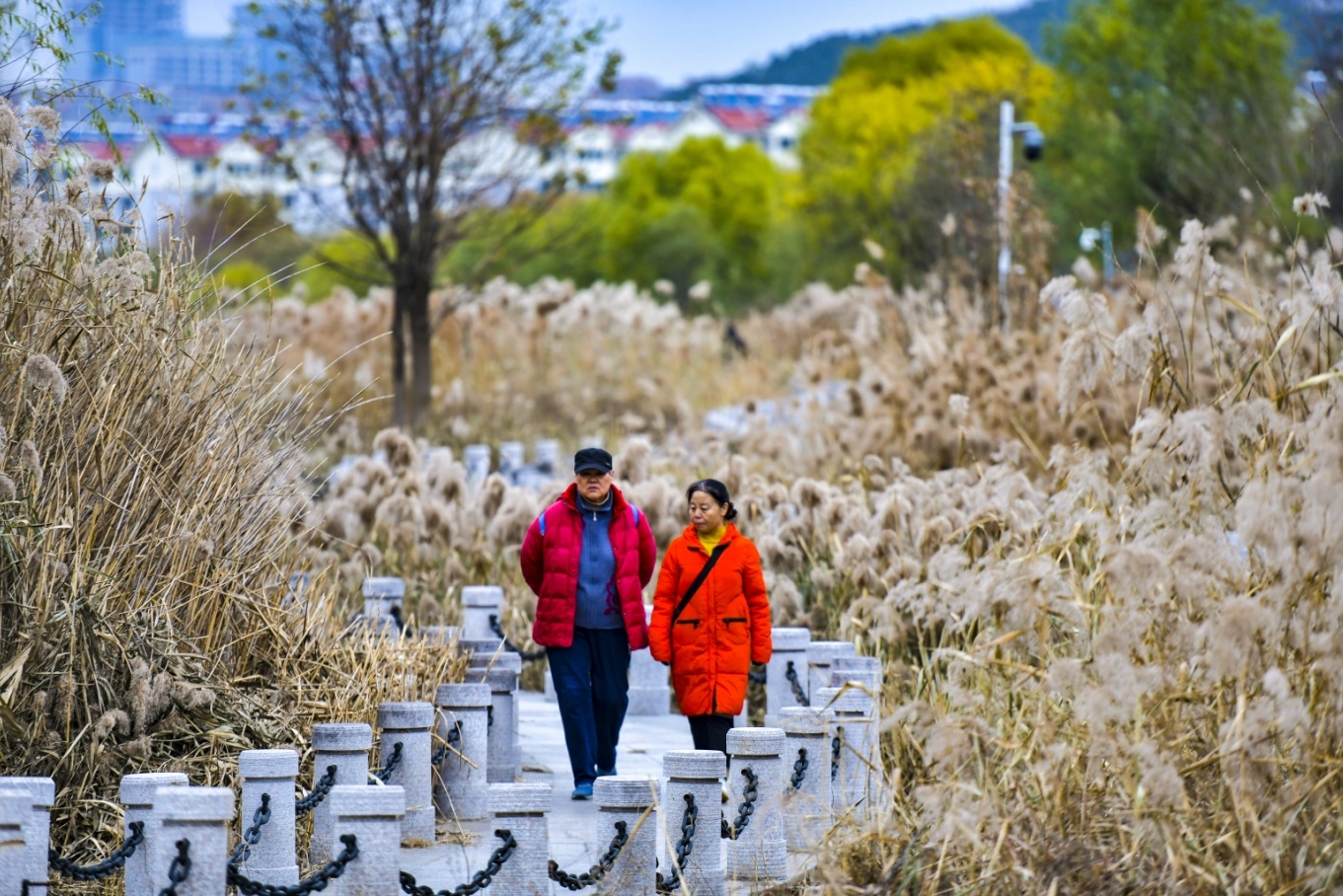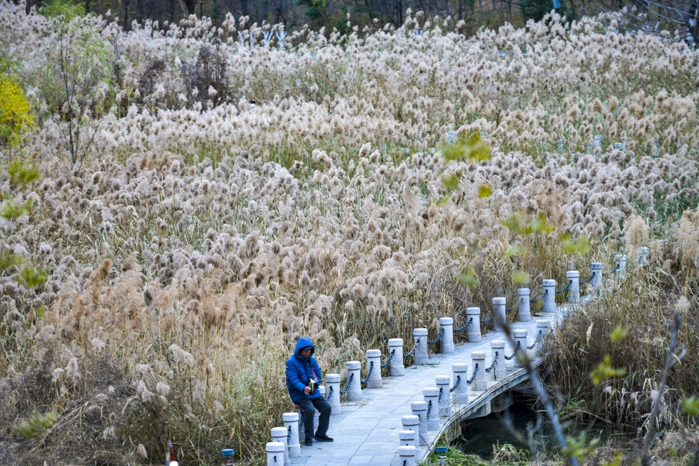 在济南龙鼎滨水公园凤凰湖上游的湿地内,有2000多平方米的芦苇。12月2日,记者在湿地看到,初冬时节一丛丛芦苇长出白色的芦苇花,微风吹过,芦苇轻轻摇曳,顺势起舞,远望犹如白色波涛,连绵起伏。市民漫步在芦花丛中,邂逅独属于冬日芦苇的浪漫。