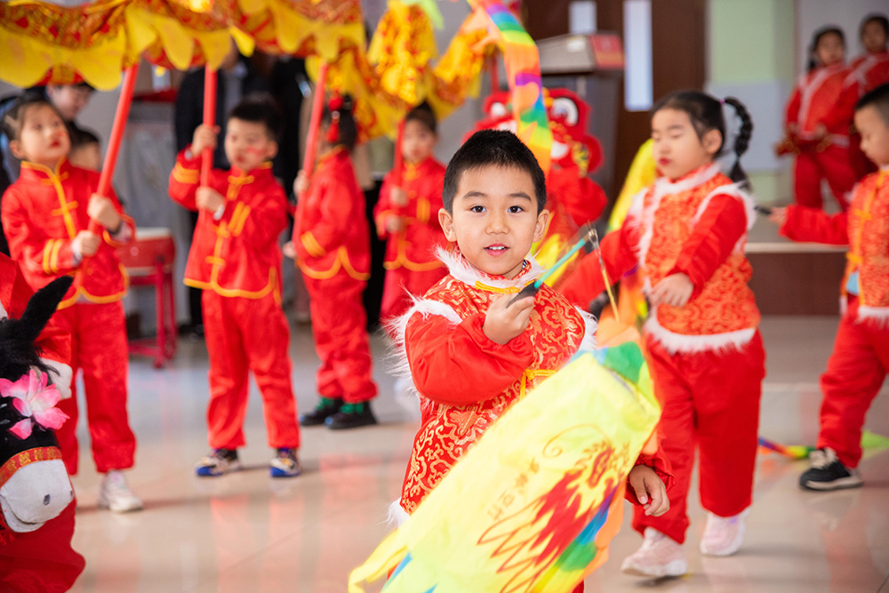为让孩子们了解中国传统民间艺术,幼儿园开设传统文化课,根据传统节日,教给孩子们不同的民间艺术,以情景交融的方式,让他们更了解中华文化。此次活动前,孩子们多日排练,熟练掌握了踩高跷、敲大鼓、跑驴、舞龙等技艺,带来了一场精彩表演。
