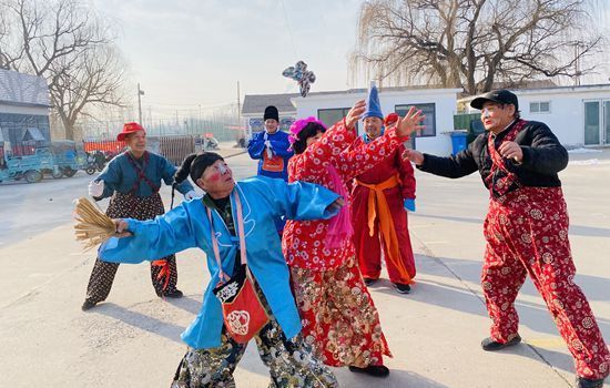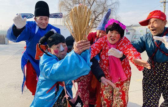 春节是中国最重要的传统节日,承载着丰富的文化内涵和民族精神。为传承和弘扬中华文化,营造浓厚的传统节日氛围,2月5日,在山东省淄博市临淄区辛店街道毛托村的村委大院,村民们经过精心打扮,准备开始扑蝴蝶的表演。他们有的扎着朝天辫儿,穿着碎花衣,有的则拿着蒲扇,每个人脸上都涂着厚厚的粉、红红的腮红,颇具喜剧效果。随着锣鼓声,坐在铁旱船车上的村民举着八米长的钓鱼竿,将上面拴着的蝴蝶上下拉动,打扮各异的村民们时而趴在地上静等蝴蝶落下,时而猛然起身,来个空中扑蝶,还佯装不经意地绊倒他人,两两摔倒在地,“笑果”十足。