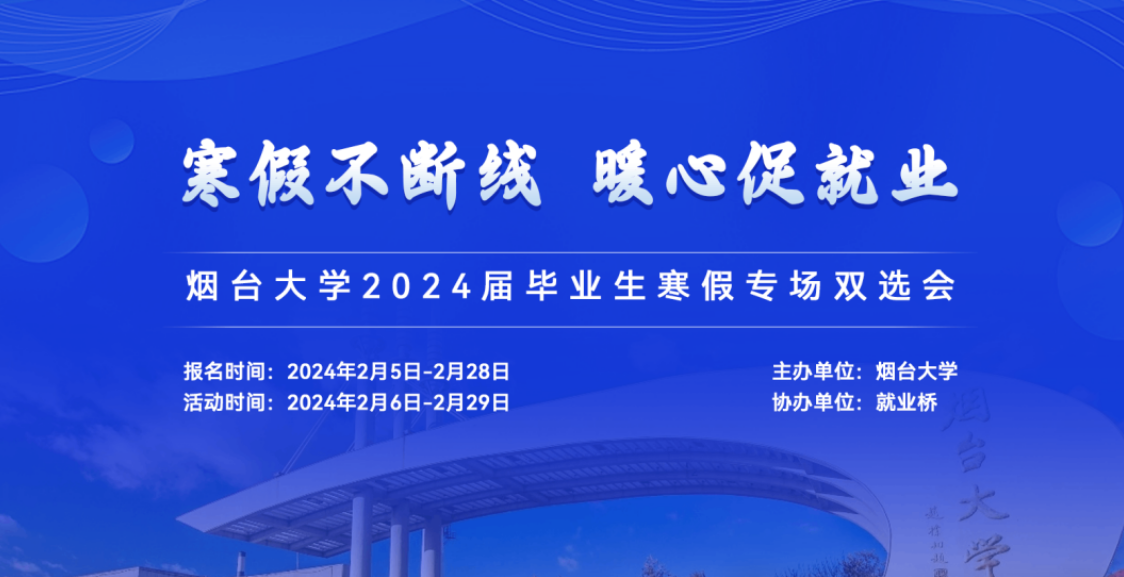 访企拓岗、就业信息推送、简历制作指导、AI模拟面试……为促进2024届毕业生顺利就业、尽早就业,烟台大学根据教育部、山东省关于高校毕业生就业工作相关部署,制定《2024届毕业生冬季促就业专项活动工作方案》《2024届毕业生寒假促就业暖心行动方案》,聚焦就业重点难点问题,充分利用寒假窗口期,围绕拓渠道拓岗位、毕业生精准指导与帮扶、“就业育人”主题教育系列活动、首届全国大学生职业规划大赛等活动,在做好针对性就业指导、提升校园招聘供需匹配度等方面发力,讲求精准、实效拓展岗位。积极优化指导服务,切实提升学生就业工作质效,以服务促进毕业生高质量就业。