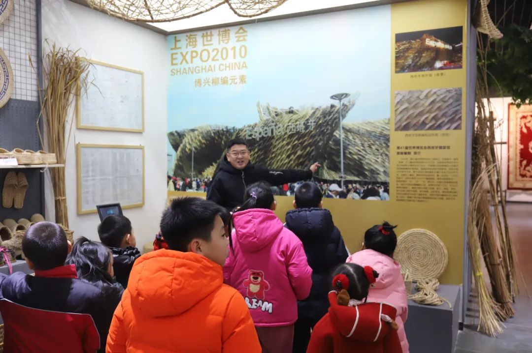 走进文化非遗展馆,宣讲员用通俗易懂的语言,搭配非遗老物件向孩子们讲解非物质文化遗产的概念、非遗项目类别、博兴草柳编的文化历史以及非遗资源保护政策,并带领孩子们参观了博兴地域特色的非遗项目。草柳编、布老虎、手工地毯等琳琅满目的非遗展品吸引着一双双好奇的眼睛。
