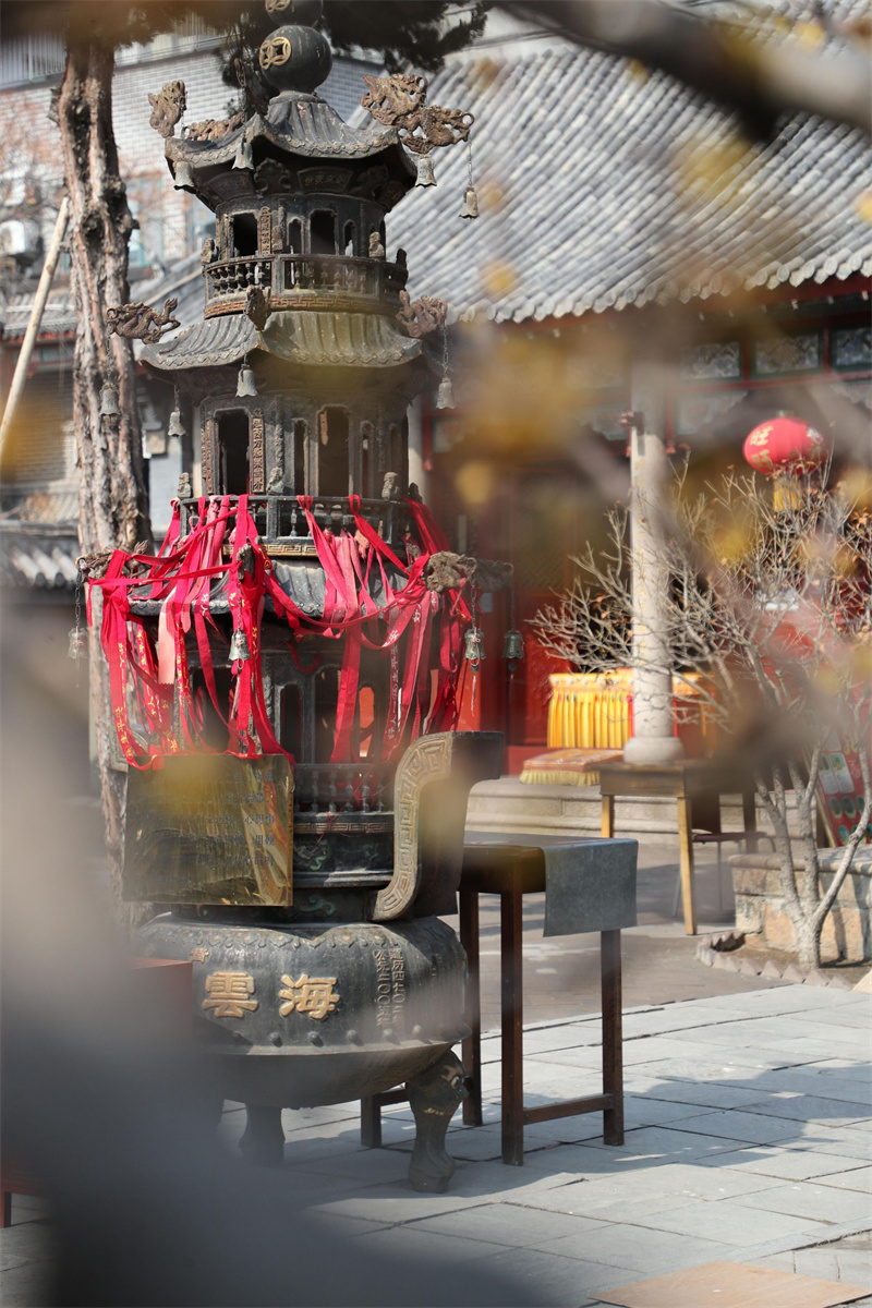 海云庵是青岛著名古建筑,始建于明朝,迄今已有500多年历史。在院内右侧有一株蜡梅,枝干茂密茁壮,充满历史的沧桑感。目前这株蜡梅已盛开,走近轻嗅,分外清香沁人心脾。