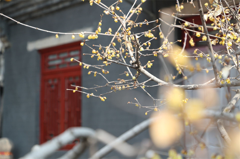 枝头蜡梅与古建筑相得益彰