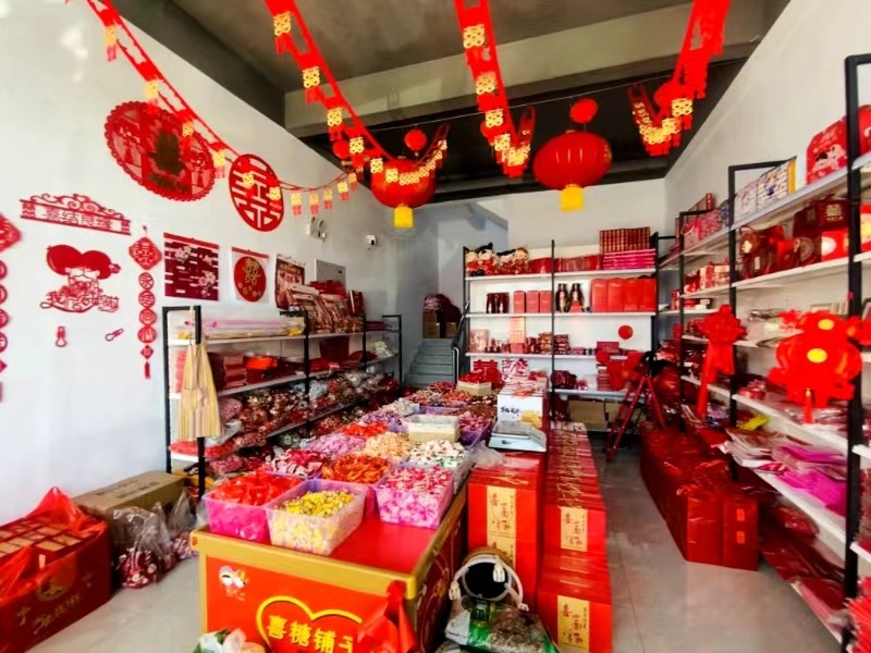 与王新红的首次创业不同,经营婚庆店的邱爱霞已是有15年经验的老“生意人”。“一直想把婚庆店做大,但经过考察发现,不是店铺小就是租金贵,都不合心意。”邱爱霞说,当听说金山镇农产品集散中心建起了沿街房,他们过来一看,马上就相中了,便以每年1万余元的价格租了一间110平米、上下两层的沿街房,并成为这里第一家开业的商铺。“这个地方交通便利,位置也很醒目,从2023年11月开业至今,收入还是很可观的。”邱爱霞高兴地说。