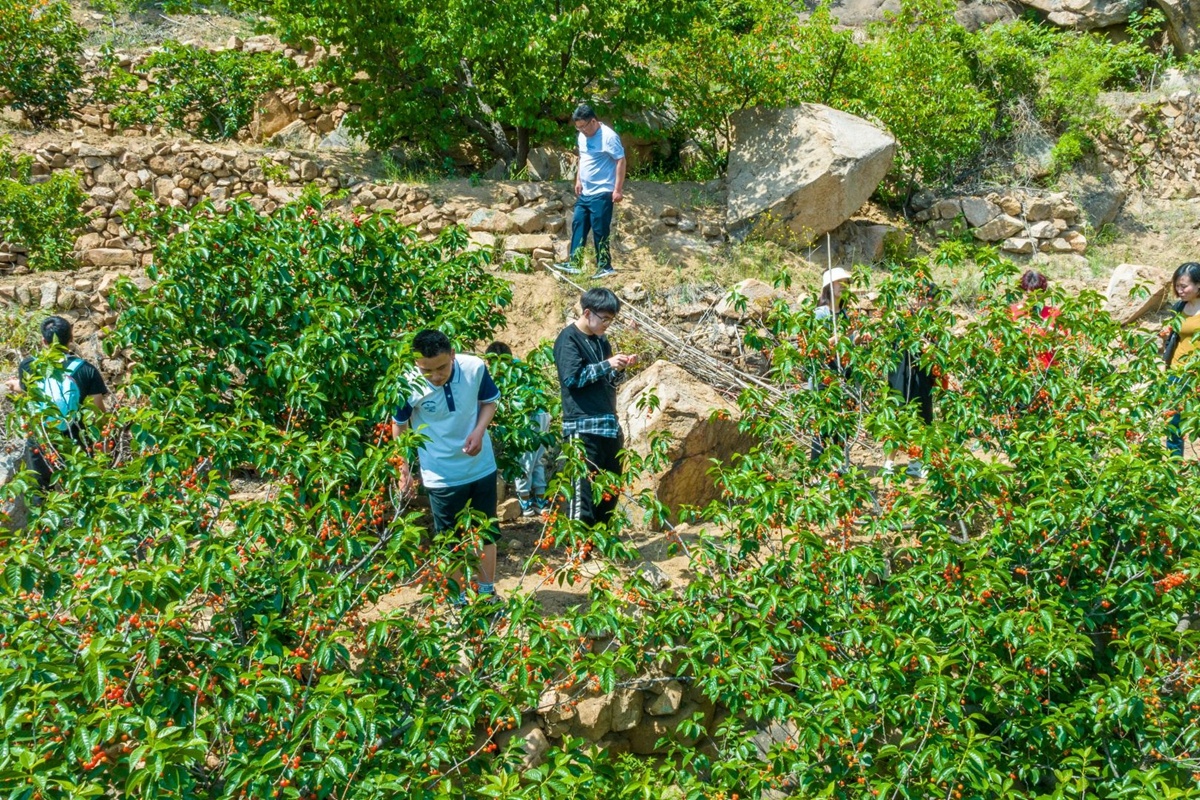 近日,青岛市崂山区北宅街道的樱桃迎来了采摘季,一簇簇红彤彤的樱桃挂满枝头。随着樱桃节的开幕,众多市民游客沿着山路进入北宅科村、周哥庄村的樱桃采摘园,边爬山边采摘,体验乡野之趣。
