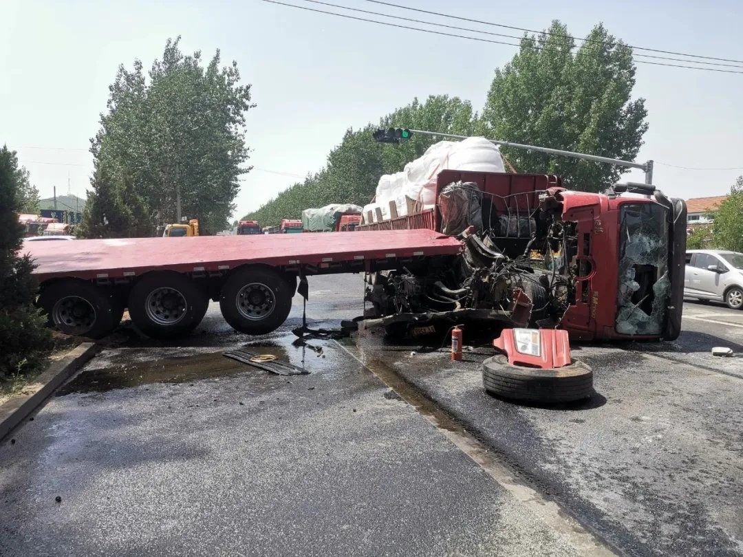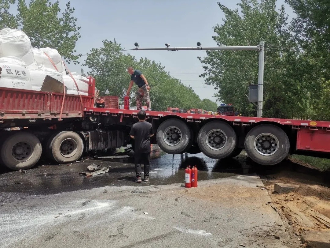 近日,在潍坊市昌乐县乔官镇黄家洼村附近,两辆行驶在胶王路上的半挂大货车发生追尾,后车车头起火,火势瞬间蔓延,情况十分紧急。关键时刻,附近商铺的陈安新、王令德、梁功祥、王建峰挺身而出,化作“急先锋”,自发前来救火,上演了合力救人的感人一幕。