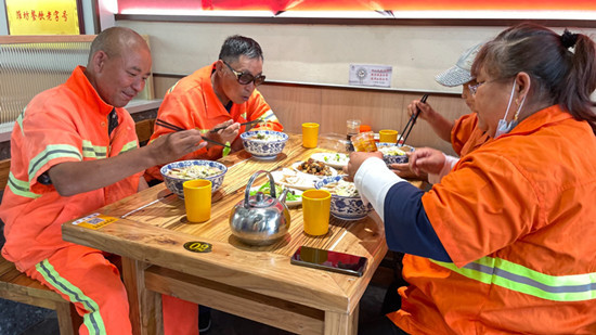 “这顿饭吃得很开心,我们作为环卫人员,时常能感受到来自社会的关爱,还经常收到小礼物等等,我们更要干好自己的工作。”环卫工人张女士说。