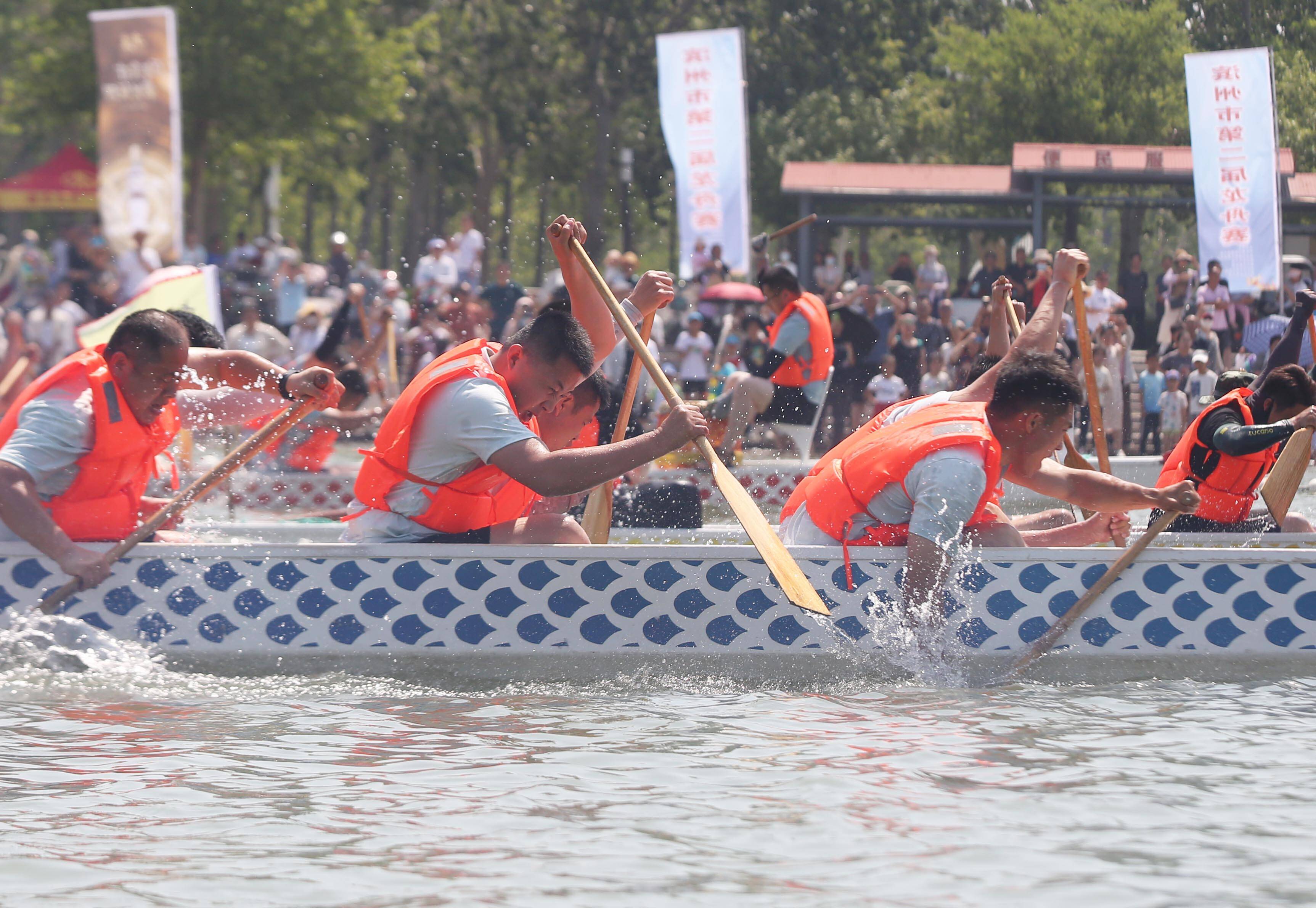 “尖庄杯”滨州市第二届龙舟赛由滨州市委宣传部、滨州市精神文明建设委员会办公室、滨州市总工会、滨州市体育局、滨州市工商业联合会、滨州市体育总会主办。“本届龙舟赛是滨州市纪念毛泽东同志‘发展体育运动,增强人民体质’题词72周年主题系列活动之一,不仅以龙舟赛为媒传承了中华民族优秀传统文化,更有助于滨州创建全国全民运动健身模范市和全国文明城市创建等工作。”龙舟赛主办方相关负责人表示,参赛选手团结协作、奋楫争先的龙舟精神,势必激发全市干部群众乘风逐浪、敢为人先的创业热情,共倡健康,共话发展,共享美好,全力推进心安城市建设,赋能更高水平品质滨州。