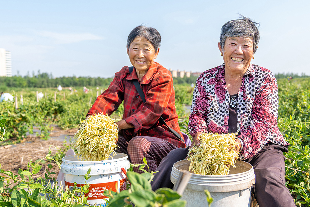 “今年合作社已经收了三茬金银花,平均亩产达到了110公斤。村民从白天忙到晚上,抢抓黄金采摘期。”合作社负责人弭晓凤说。该合作社成立于2020年4月,入选2023年度山东省中药材生态种植基地创建单位,共种植金银花40.6万株,品种以“北花一号”为主,预计2024年总产量超7.7万公斤,总产值逾1000万元。
