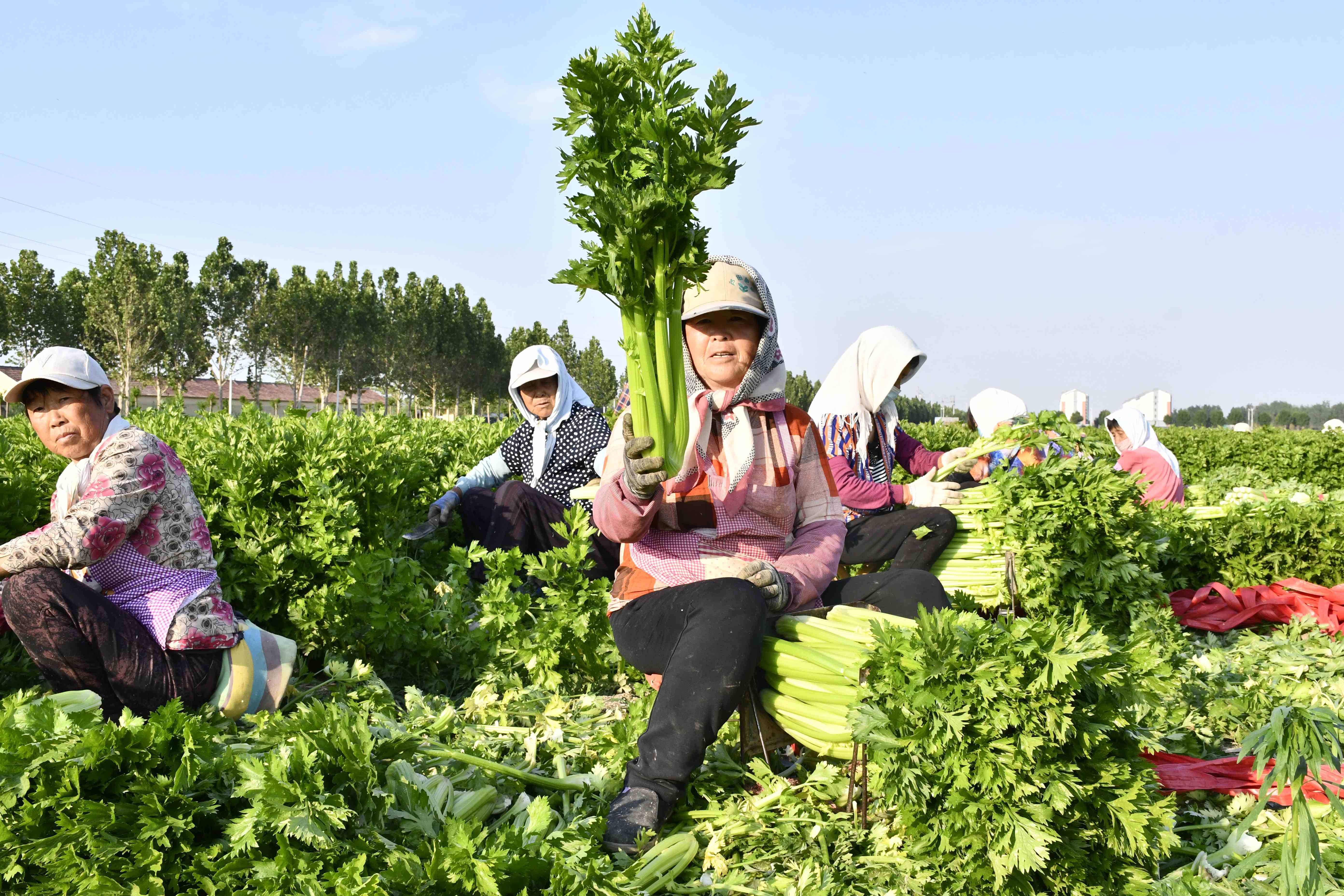 连日来,在滨州市惠民县桑落墅镇桑家村芹菜种植基地,芹菜绿得发亮,长势喜人,特有的芹菜清香扑鼻而来,沁人心脾。村民正忙着收割、分拣、打捆、装车,一派繁忙的丰收景象。通过标准化栽培与精心管理,根粗叶茂的芹菜不负厚望,品相好、市场认可度高,主要销往北京、上海、江苏等地。