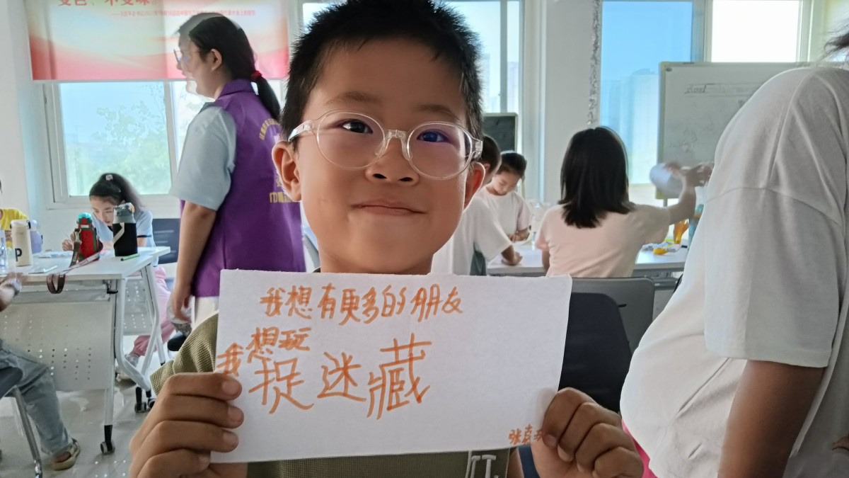 在齐林家园社区举办的公益暑期托管班上,孩子写出了自己的心愿。