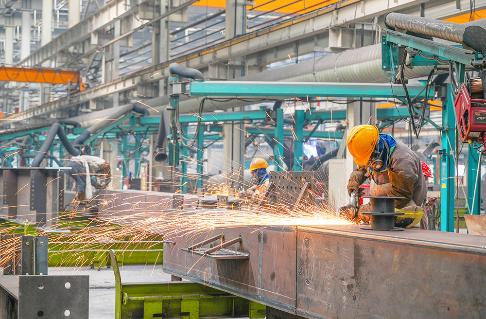 在山东沪江建筑有限公司生产车间里,电焊工人全副武装,绝缘手套、安全帽、保护面具、长袖长裤一样都不少。“高温天气里,这套装备是我们最不想要的必需品。天气太热了,干活不到10分钟,衣服就能全湿透。”工人刘学伟边擦汗边说,电焊条融化时的温度能达到2000℃,周围的温度也随之升高,仿佛一直抱着火炉子。