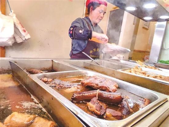 甏肉干饭的制作过程也是一场视觉与嗅觉的盛宴。店主们将精选的五花肉切成大小均匀的块状,放入陶罐中,加入各种香料和秘制的调味料,再用慢火细细炖煮。随着时间的推移,甏肉逐渐散发出诱人的香气,弥漫在整个店铺中。而当干饭被蒸煮至软糯时,店主们会将其与甏肉一起盛入碗中,再淋上一勺浓郁的汤汁,这样一碗色香味俱佳的甏肉干饭便大功告成,等待着食客们的品鉴。
