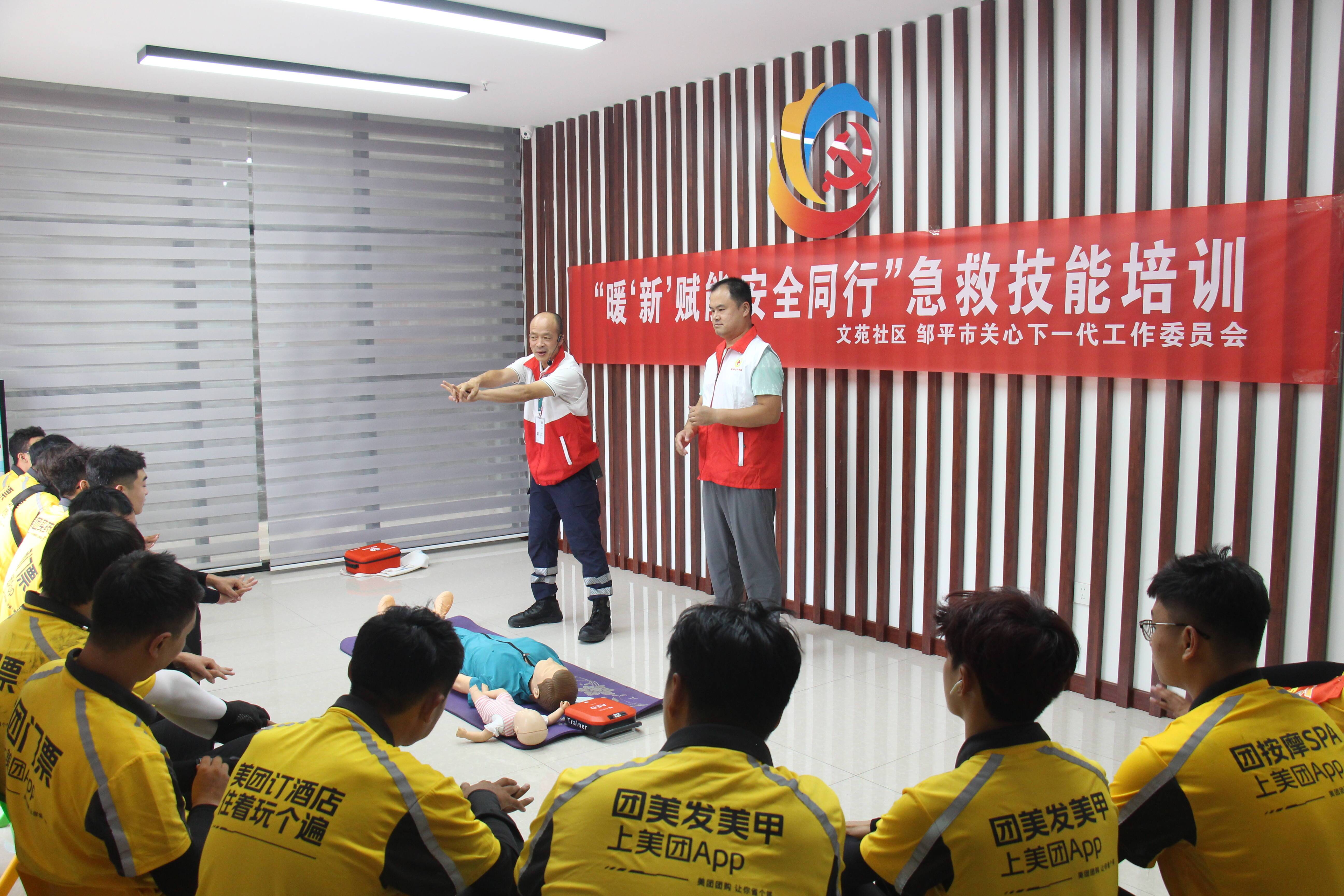 在文苑社区活动中心内,新业态工作者们围坐一堂,专业医护人员耐心细致地为他们演示心肺复苏、止血包扎等急救技能,共同提升应对突发状况的能力。