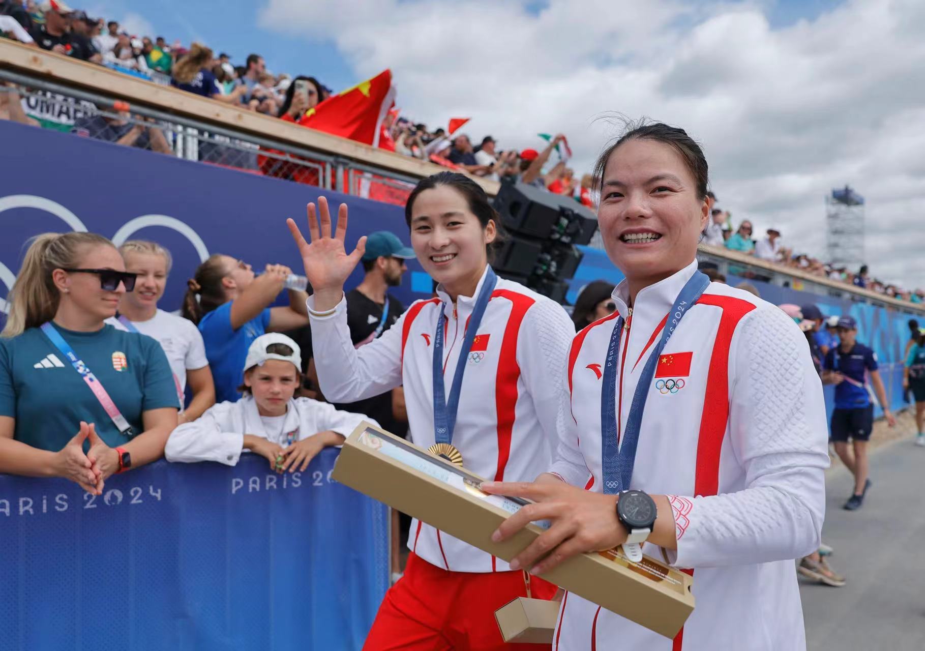 此刻,马恩河的波浪拍打着这条窄窄的冠军小艇,晶莹的水滴划过艇身侧面的鲜艳国旗和桨手的名字——孙梦雅、徐诗晓。她们砥砺五载,奥运两金,让中国女子划艇扬威奥运、惊艳世界;她们双姝合璧创造了五年不败的神话,写就了属于中国的水上传奇。