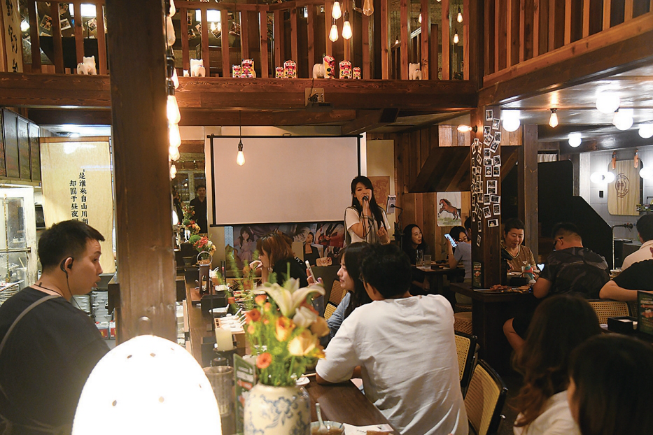 日剧《深夜食堂》的流行使得日式小酒馆成为行业最初模仿的对象,中式小酒馆大多脱胎于此。老四从2016年入行,走遍全国十几个城市探访当地小酒馆,总结出中式小酒馆的发展逻辑。“小酒馆的核心就是社交,要么是老板、主理人和客人的社交,要么是客人之间的社交,这是小酒馆的功能。为此,氛围上要保留居酒屋的感觉,有餐有酒,实行吧台制。”老四介绍,随着店面增多,主理人分身乏术,推动客人之间的社交尤为重要,诗歌、驻场歌手为客人提供现成的话题。“小酒馆要提供一种情绪氛围,有自由自在的感觉,人和人打交道比较放松,防御感比较弱。”老四介绍。