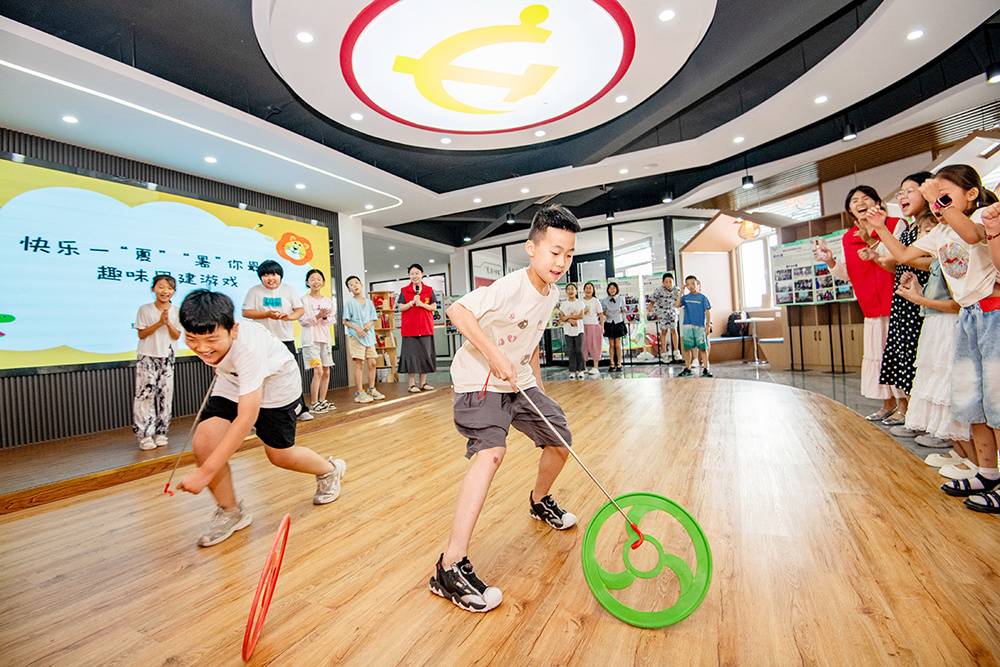 运河街道聚合新区党群服务中心开展暑期公益托管趣味游戏。