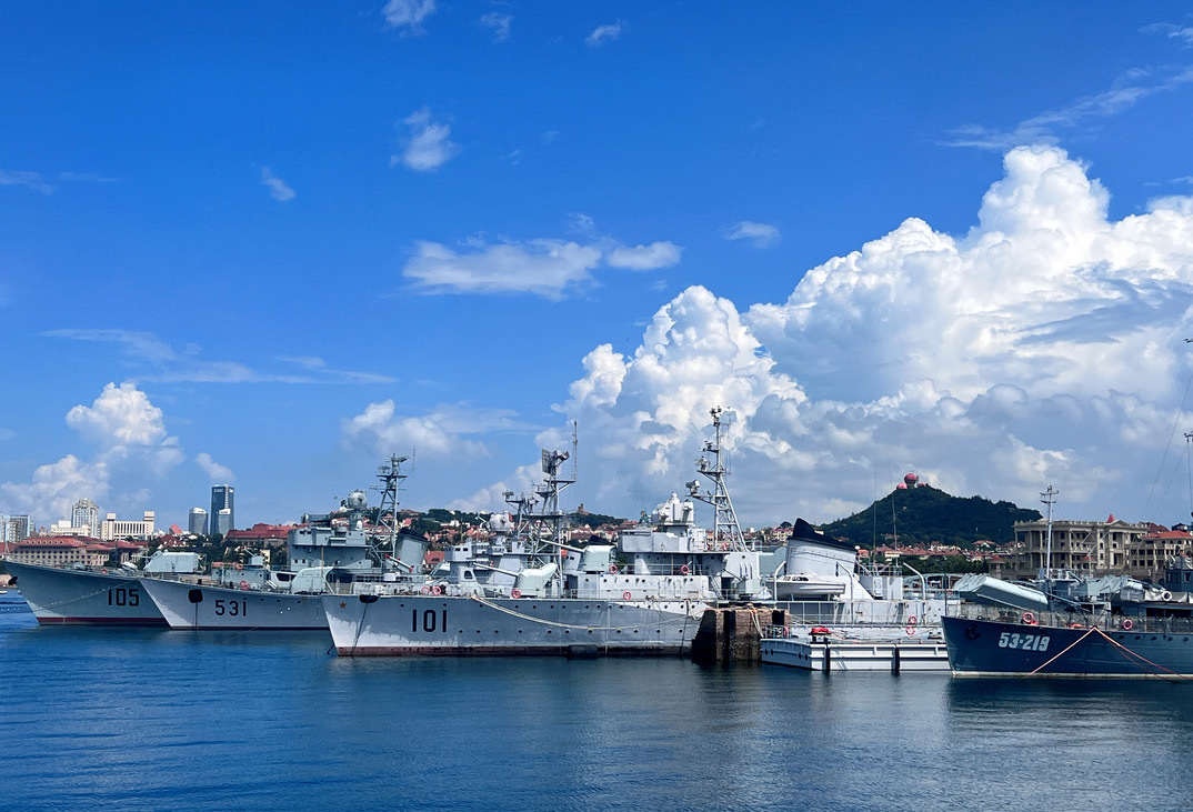功勋舰艇排列整齐,静默如诗,诉说着海洋的传奇,历史的沧桑与辉煌在此处交织。
