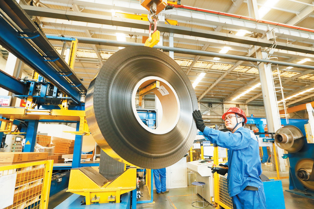 青岛云路先进材料技术股份有限公司的工人在生产出口到海外市场的非晶带材 梁孝鹏 摄