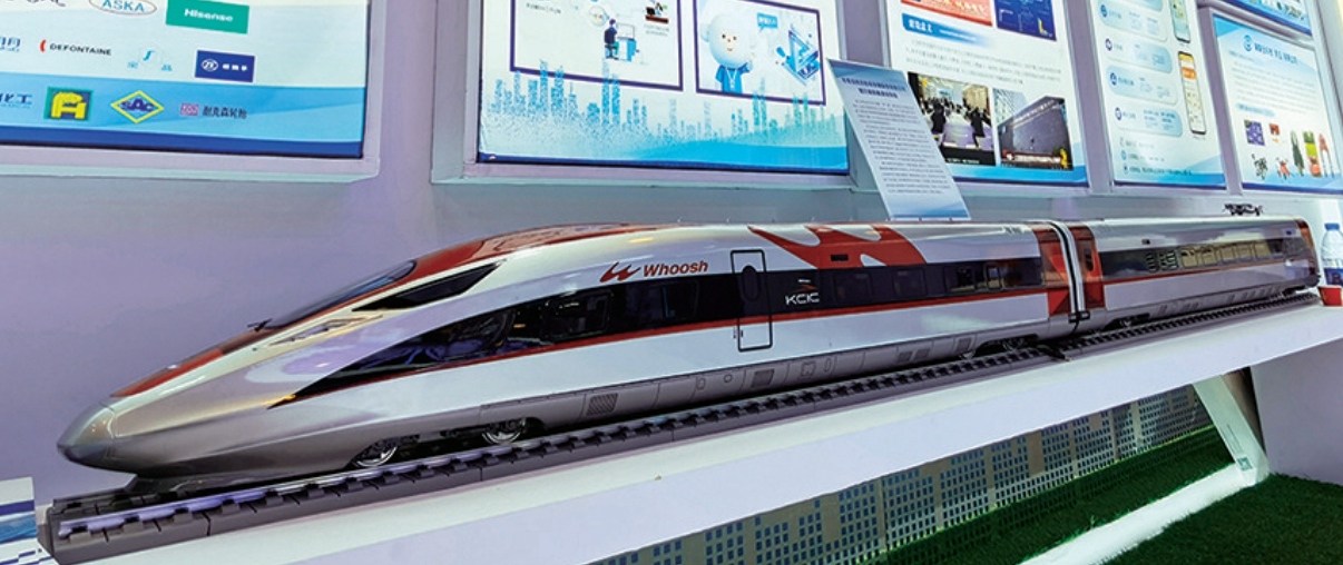 2024年服贸会青岛展区内,由中车四方股份公司设计制造的雅万高铁动车组模型展现“青岛服务”实力。