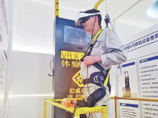 在大唐黄岛发电有限责任公司VR培训中心 工作人员沉浸式体验高空作业等场景