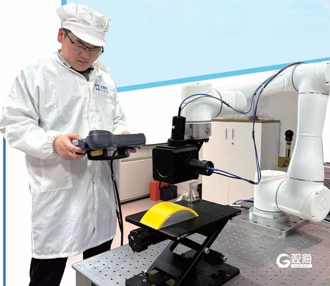 “太赫兹是一种频率在0.1—10THz范围内的电磁波,处于微波和红外之间,具有穿透性强、成像光谱特征明显、脉冲短且不容易破坏被检测物质的独特优势,其光谱能反映分子种类和结构的细微变化,非金属、胶体、粉末等一系列物质都能被捕获,在生物医学、工业检测、安防、通信及航空航天等领域均有广泛应用。”在青源峰达实验室,公司营销总监刘平安向记者展示了太赫兹技术在工业检测领域的应用——只见他将一块材料放到实验仪器检测平台上,旁边的机械臂便开始灵活翻转,一束束无形的太赫兹波悄然掠过材料表面,几分钟后,材料内部的微观结构便清晰地呈现在连接仪器的屏幕上。“接下来,我们将持续拓展新技术、新产品应用场景,以更好推动太赫兹技术产业化。”刘平安介绍。