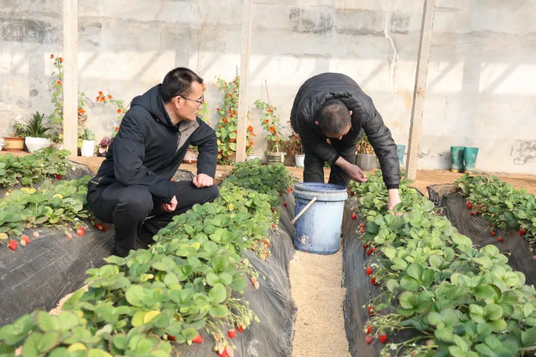 与此同时,在魏桥镇郑家村,草莓种植能手贾凯的大棚内同样忙碌而有序。他正细心地清理老化、生病的草莓叶片,以确保草莓的健康生长。“春季是草莓管理的重要时间节点,我每天都会来棚里看看,清理有病害的草莓苗和叶片,保证草莓的健康生长。”在镇农业技术人员的悉心指导下,贾凯采用了绿色防控技术,有效降低了病虫害的发生率,为草莓的丰收提供了有力保障。