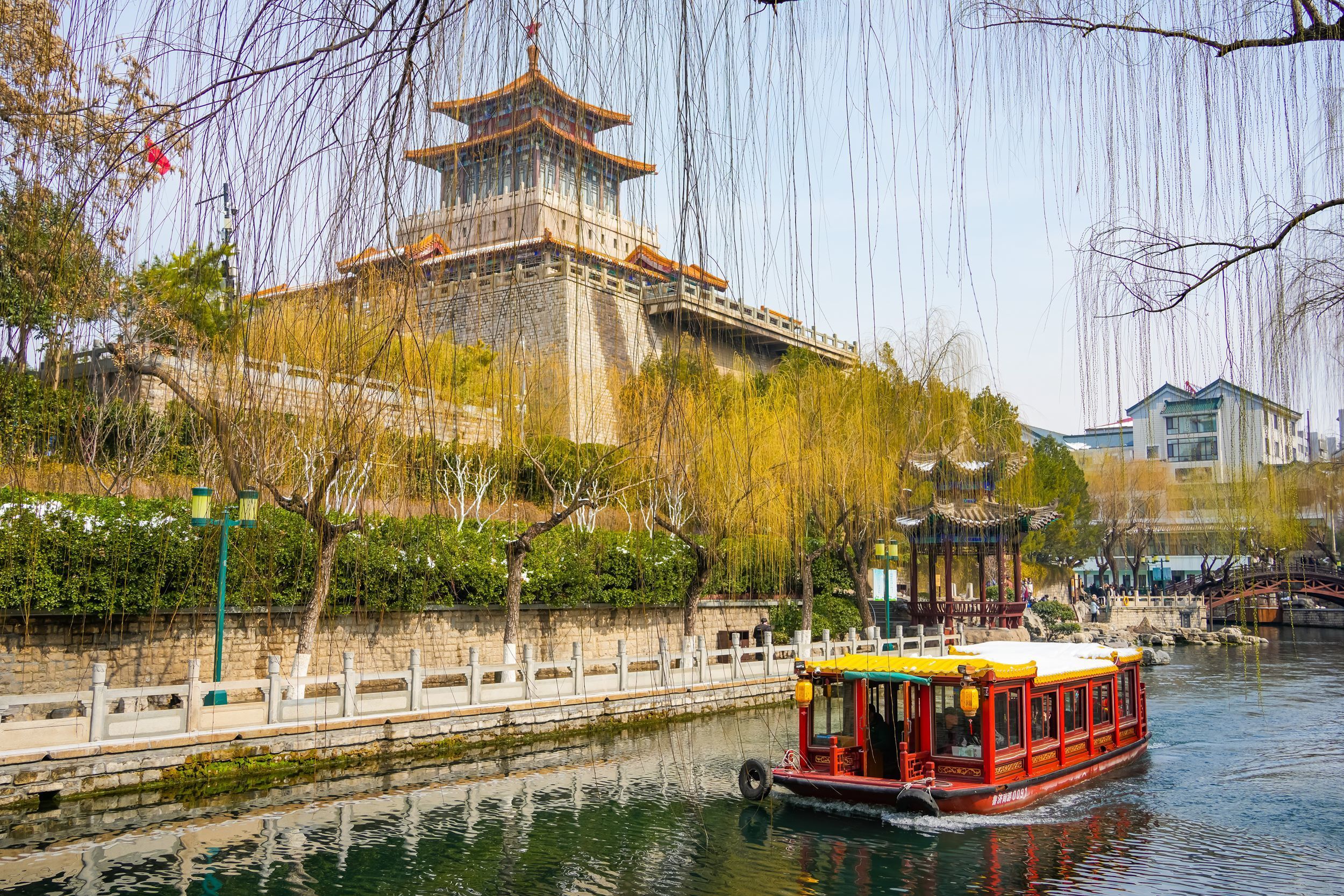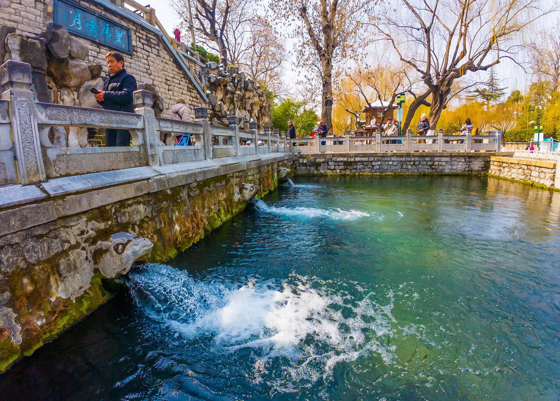 3月4日,济南积雪逐渐消融,黑虎泉水位迎来三连涨,当日水位达28.25米,较前一日攀升4厘米。同时,护城河呈现出雪后春韵,迎春花绽放出金黄的花朵,柳枝也吐出嫩绿的新芽,为城市增添了一抹生机,不少市民前来赏景感受春的气息。