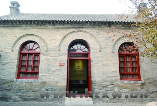 从原状生活区来到生平陈列区,整个院子的建筑风格发生了很大变化。与原状生活区典型的明清建筑风格不同,这个院落更多地呈现出民国时期的建筑风格,门窗的上端是半圆拱形,房屋的高矮和体量大小也突破了明清建筑的严格制式,有的院落当中,两侧厢房的屋脊和屋檐比正房高出一截,门廊和门窗的样式更简洁明朗。