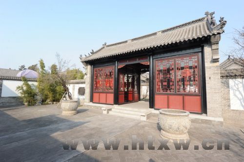 经过门房,往里有两条通道,直行是一条长长的胡同,外宽里窄,预示着钱财、福运“宽进窄出”,有聚财之意。封建社会等级观念很强,这条胡同通常是下人出入的便道。往左转经过一个园门,便进入了中东跨院中轴线上的第一进院落。