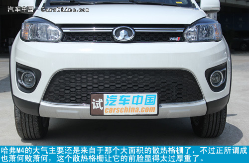 哈弗M4的大气主要还是来自于那个大面积的散热格栅了,不过正所谓成也萧何败萧何,这个散热格栅让它的前脸显得太过厚重了,但总体来说这个前脸部分的设计还是很成功的,毕竟能给人一种新鲜感。
