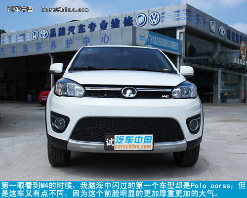 哈弗M4是基于现款长城炫丽的基础上打造的一款A0级SUV车型,不过其实在看到哈弗M4第一眼的时候,正好看到了它的前脸,但这时我脑海中闪过的第一个车型却是Polo cross,但是这车又有点不同,因为这个前脸明显的更加厚重更加的大气。