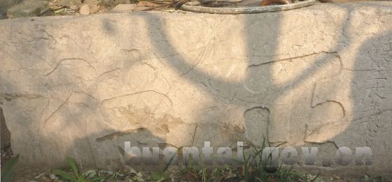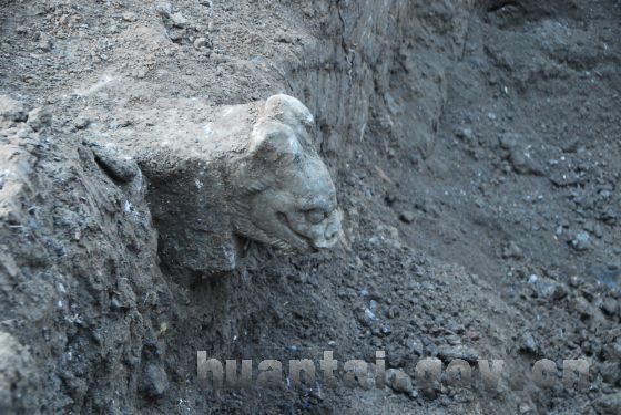 王渔洋故居南路道路改造工程施工现场清理出来的石桥上的兽首。兽首大约有两个拳头大小,根据古桥的规制和兽首的造型,并结合记载基本可以确定这座石桥的年代属于明代中期。该石桥是连接护城河和四世宫保牌坊上的桥梁,位于新城古城墙的南门外。
