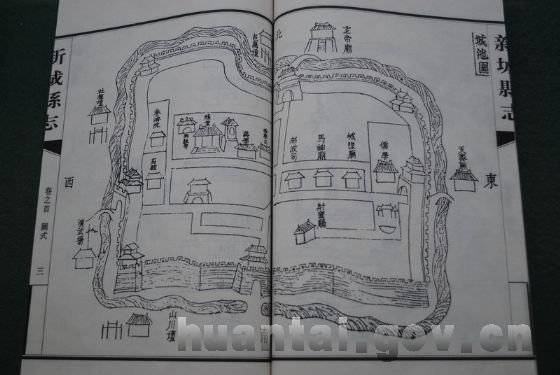 如今,新城的古城墙已经荡然无存,不过,从明朝天启年间和清朝康熙年间的《新城县志》上仍可一窥古城墙的风貌。从现在保存下来的这两幅古城的示意图可以看出,明清两朝,新城古县城和城墙的变化不大,城墙围绕古县城一周,外侧则有护城河守卫,护城河和城墙之间有绕城四周的马道,按照史料上的记载,马道两侧还应栽有榆树、柳树等树木,同时,护城河上还有四座桥,以便于人们通行。