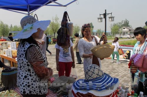 “这个挎包是纯天然手工编织的,还有那个画,都很精致,我很喜欢。”在工艺品展台前,来自中国旅行社的一名游客仔细挑选着柳条编织的民俗包和芦苇画,爱不释手。