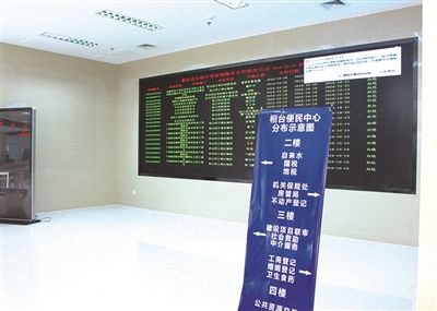 与行政服务中心相比,新的便民大厅不仅是面积大了不少,还增加了出入境登记、国地税服务、社会救助、婚姻登记等服务,还可以办理水、电、气收费等便民事项,并引进工商注册、税务、环评、安评等中介服务,为企业提供自选服务。具体划分是:一楼为社会保障服务区、出入境管理服务区,二楼为纳税、不动产登记服务区、水电气服务区,三楼为行政许可、建设项目联合审批服务区、工商注册登记服务区、社会中介机构服务区和婚姻登记服务区,四楼为公共资源交易区,行政许可职能部门及许可事项进驻率均达到100%,并充分授权,窗口办结。共纳入行政许可事项373项、便民服务事项239项。