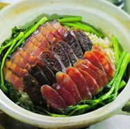 煲仔饭是广东的传统美食。 广式煲仔饭的风味多达20余种,如腊味、冬菇滑鸡、豆豉排骨、猪肝、烧鸭、白切鸡等等。 其实,瓦煲除了指一种盛器,还指一种烹饪方法,就是把淘好的米放入煲中,量好水量,加盖,把米饭煲至七成熟时加入配料,再转用慢火煲熟。区别于“砂锅”,用瓦做成的“煲”,在火候控制方面比较灵活,煲出来的饭也较为香口。