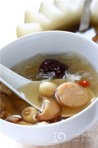 汤品中的冰糖味甘、性平,入肺、脾经;有补中益气,和胃润肺的功效。百合、银耳、雪梨、冰糖一起烹煮熬制成的汤水,不仅能够清热消暑,还可以增进食欲,美容养颜,是夏季很好的滋补之物。