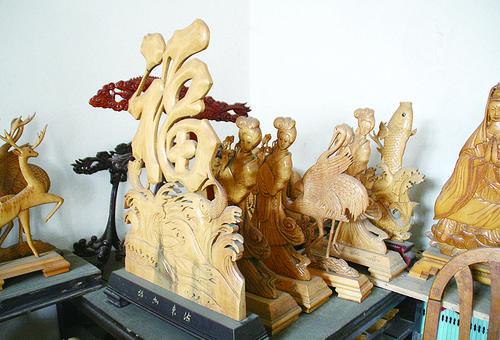 起凤镇起北村的这对聋哑兄弟名叫魏延通和魏延达,哥哥魏延通因为作品没有销路出去打工了,弟弟魏延达和妻子苗泽霞介绍了情况。走进他们家中,一座座精致美观的木雕人物让人大开眼界。房间里八仙桌、座几、茶几上的精湛雕工和巧妙的雕纹设计,让人看过后从内心里佩服他们的心灵手巧。魏延通和魏延达兄弟俩从事手工木雕已经有近二十年了,虽然手工技艺精湛,但仍面临着产品销路不好、传承后继乏人的问题。