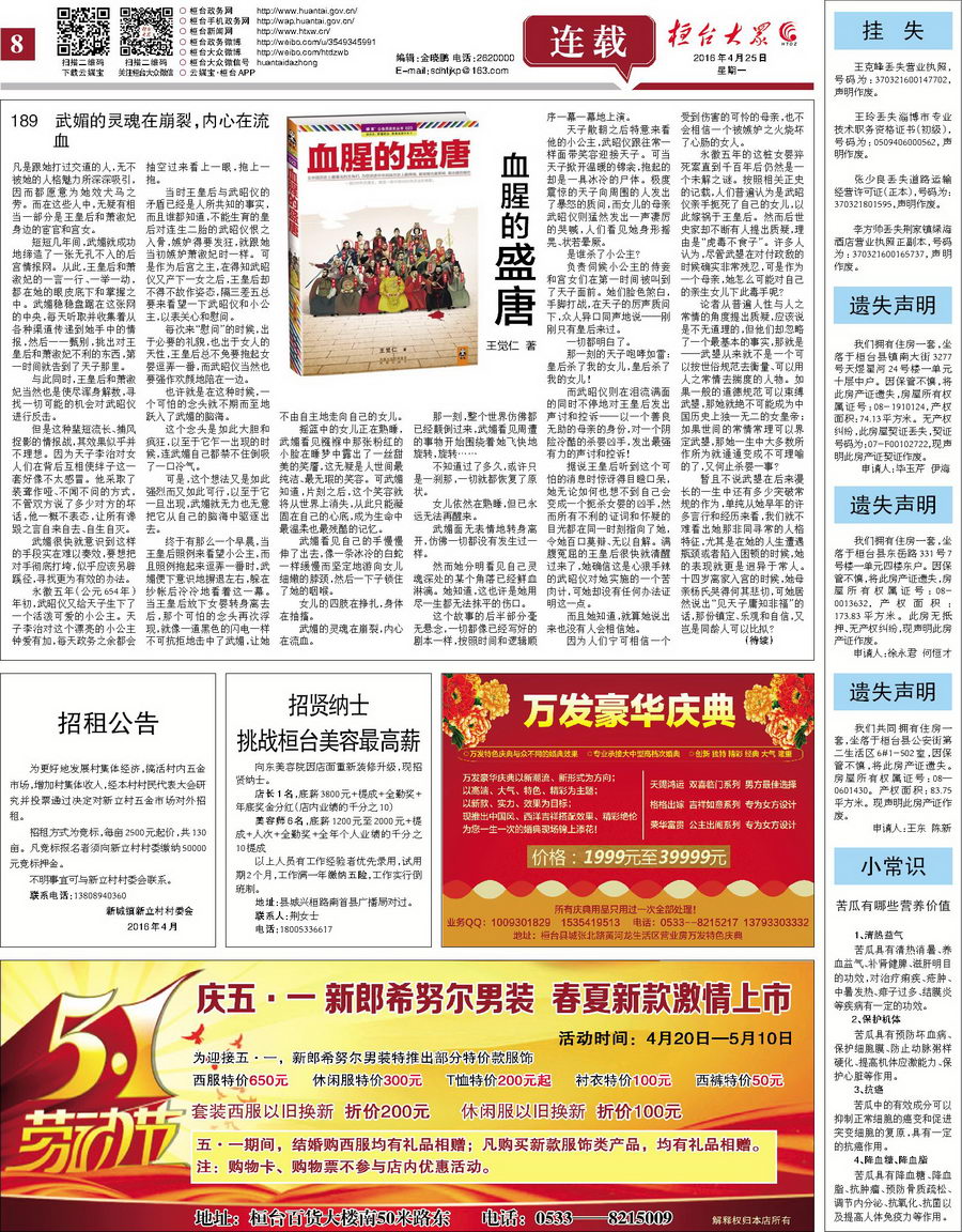 时间:2016/4/26 10:41:27 来源:桓台新闻网 【字号: