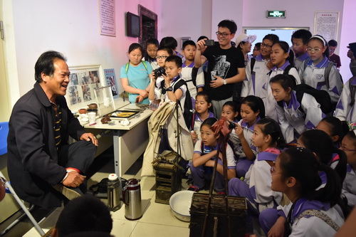 “锔——破!”一声如吟如唱的悠长吆喝声吸引了许多前来观看的学生和老师,他们纷纷围坐在项目传承人高希前身边,看他如何用手中的工具将破的瓷盆修补好。索镇刘家庄的刘氏剪刀也很受欢迎,刘氏剪刀已有近三百年历史,祖祖辈辈继承这份特殊技艺。刘氏剪刀因磨工精细、刃口锋利、销钉牢固、开合和顺、经久耐用等特点深受群众喜爱和好评。从一根铁到一把剪刀要经过72道程序,全部靠手工凭体力完成。