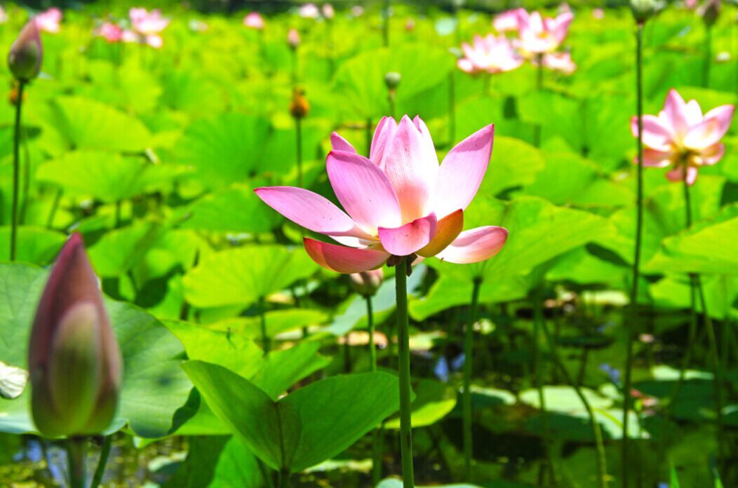 阳光下的粉荷