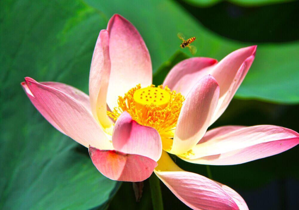 蜜蜂采蜜戏荷花