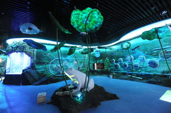 ? ?马踏湖湿地体验馆占地1800平方米,共划分为6个功能区:古韵湿地区、印象湿地区、风情湿地区、休息观景区、科普长廊区和尾区。馆内蓝色地面和弯曲迂回的通道,展现了旧时代马踏湖村村有水、户户通船的景象。