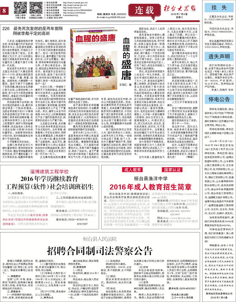 时间:2016/7/8 8:42:12 来源:桓台新闻网 【字号: