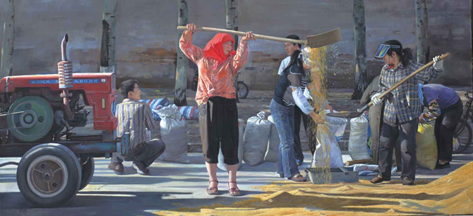 “毕业10年,我一直边代课边创作。”没有固定工作的崔先进,凭借给学油画的学生授课得来的薪水维持生计。“当我与学生们分享创作感受时,内心是一种享受;而当自己埋头创作时,生活里没有了烦恼。”几年间,崔先进在代课的间隙创作完成了《曙光》、《收获》等一系列作品,他将目光投向最广大的农民群体,把农民的生存状态以自己最擅长的写实笔法展现在了大众面前。
