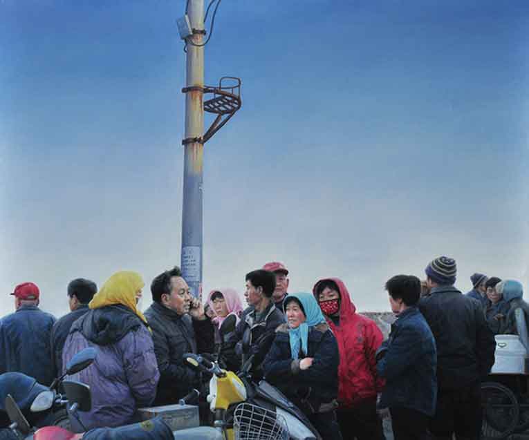 提起这幅作品的创作灵感与动因,崔先进内心五味杂陈。“我出生在那个年代,对我冲击力最大的就是,忙完麦收、秋收后,闲下来的农民们早晨四五点钟就到劳务市场找活干,我曾跟父亲去建筑工地打过工,搬砖、和水泥,现在回想起来,历历在目。”为了找作品鲜活的原型,2008年,崔先进多次出入劳务市场,他用笔再次重温了当年的经历。